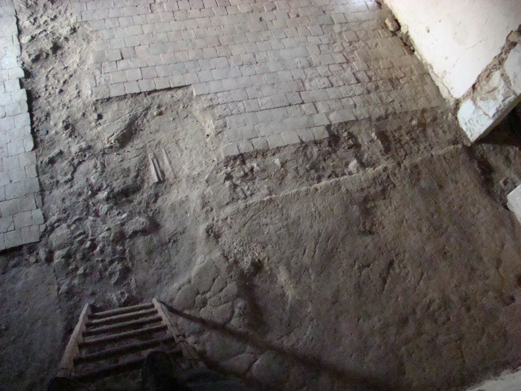 Au sol, on voit une assise de tuffeau qui correspond au montant