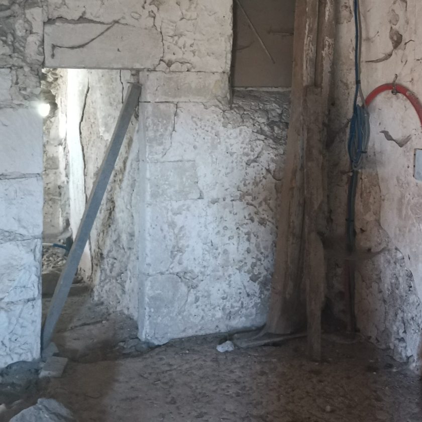 Ce mur de 70 cm d’épaisseur est construit en moellons et porte le même enduit d’origine.