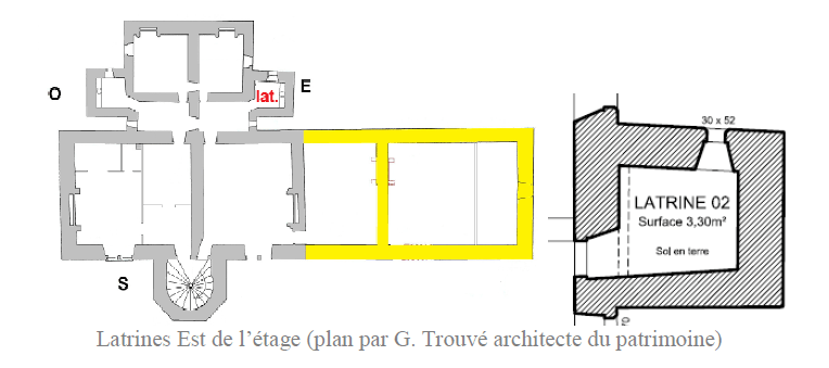 Appelée « Latrines Est du premier étage » dans l’étude Historique de Damien Castel, « latrine 01 » sur les plans par G. Trouvé architecte du patrimoine. .