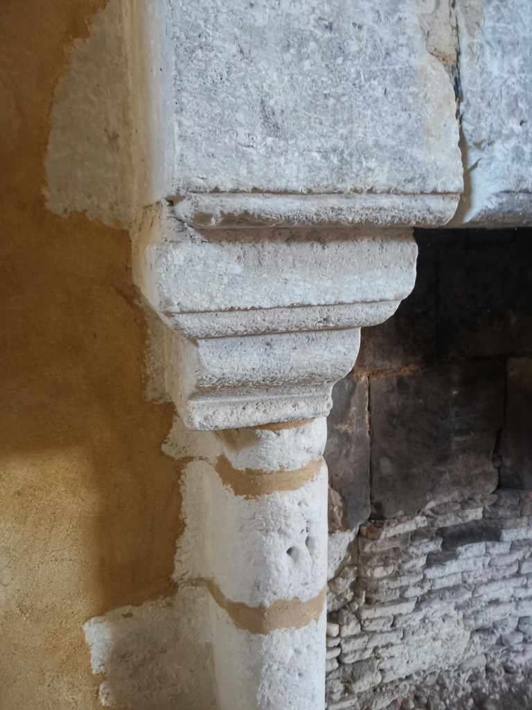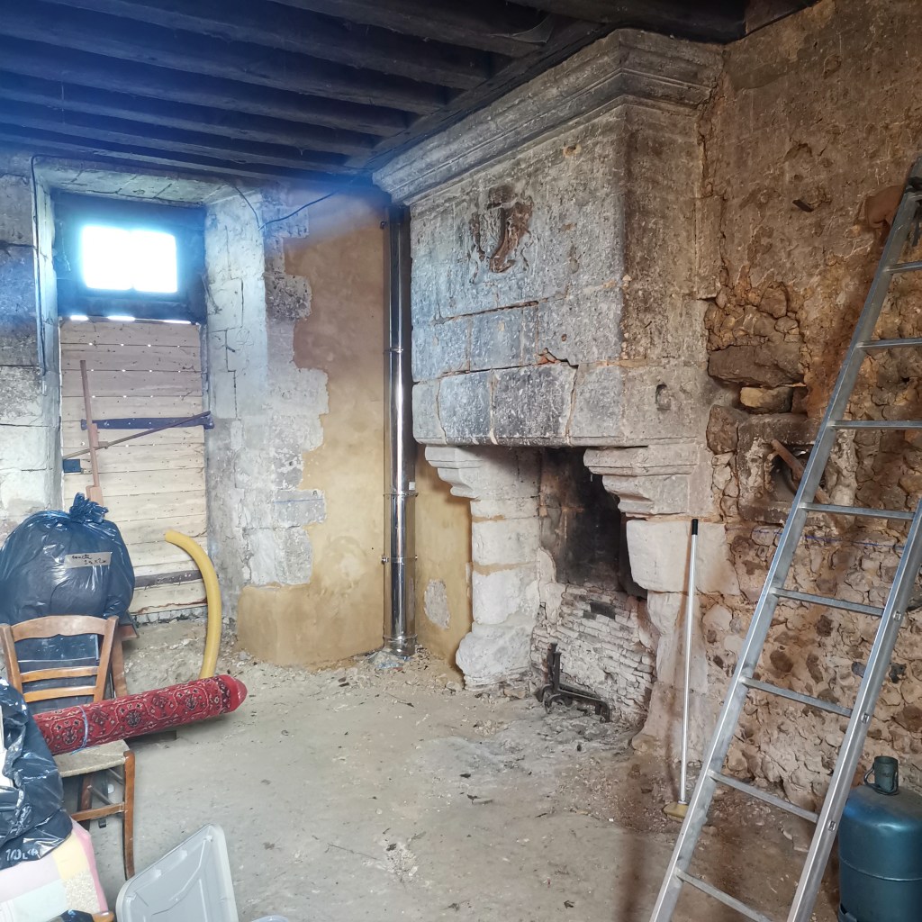 Dans cette pièce, on en a profité pour refaire le coin du mur à gauche de la cheminée.