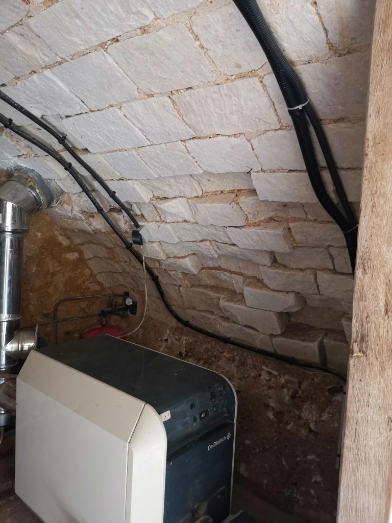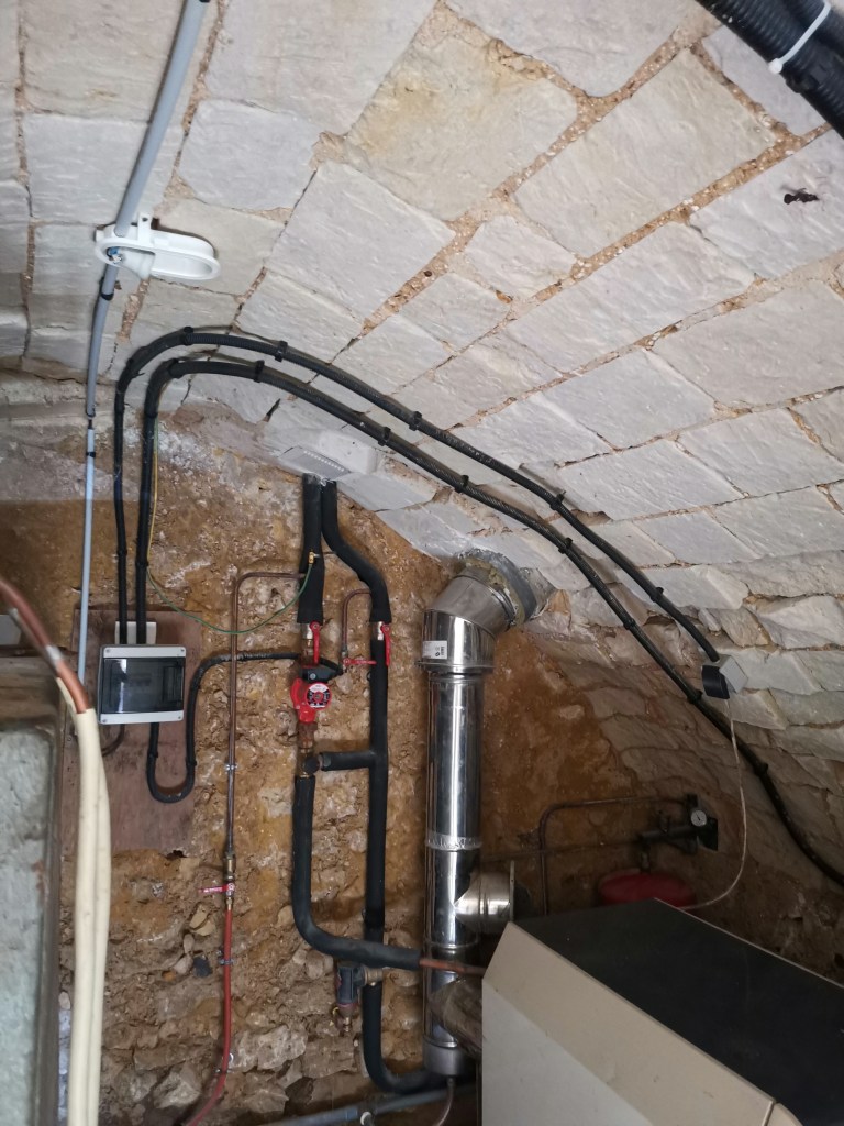 Dans le cadre de la réfection des circuits de chauffage et pour libérer cette pièce la chaudière a été déplacée dans les caves.