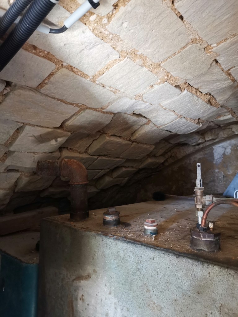 Dans la cave la plus à l’est une pièce a été aménagée et la chaudière et la cuve y ont été placées.
