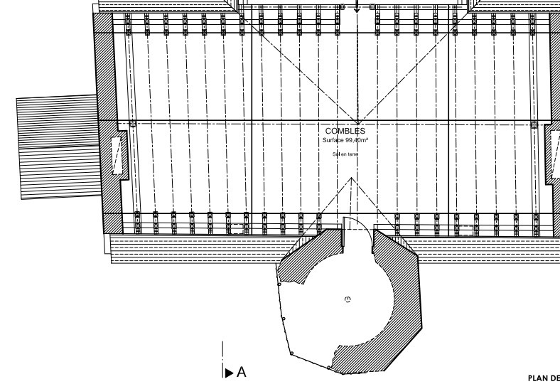 Au sommet de la tour d’escalier, la charpente et la toiture ont été entièrement remodelées, sans-doute au début du XIX siècle. Ta toiture d’origine devait être beaucoup plus aigue.