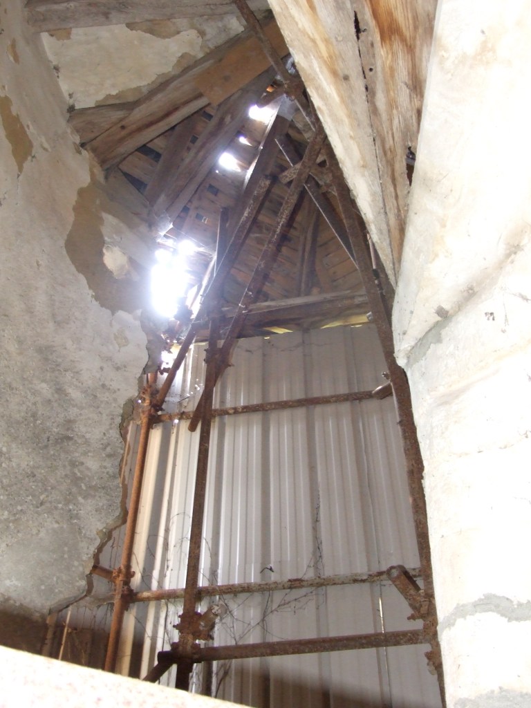 La cage d’escalier est effondrée à partir de la moitié sud.