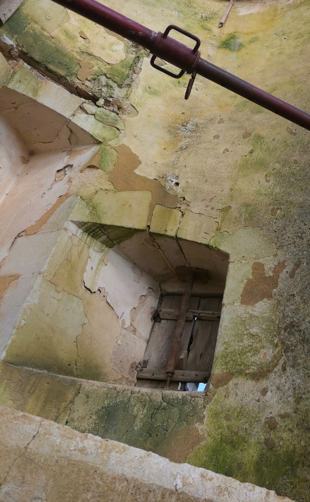 Aux huitième et neuvième marches se trouve un autre jour dont il ne reste que l’ébrasement de gauche la cage étant ensuite effondrée.