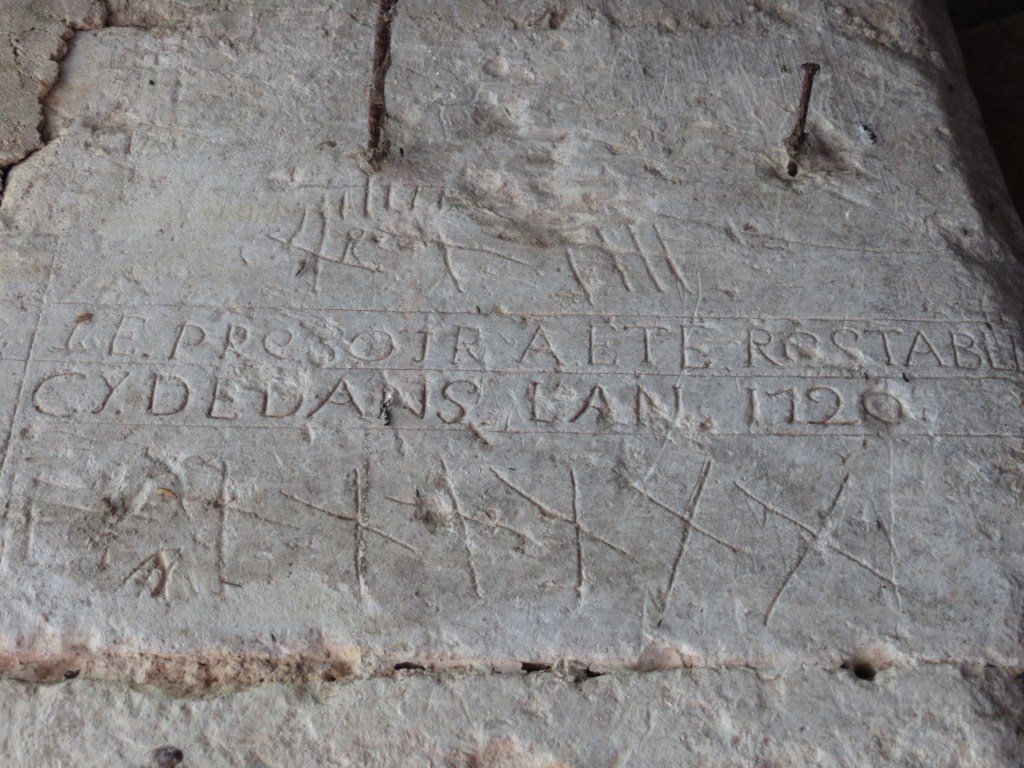 Le linteau de la porte semble contemporain du côté Est de l’ébrasement mais plus récent que le côté ouest. Autrement dit, il date des travaux du début du XIXe siècle