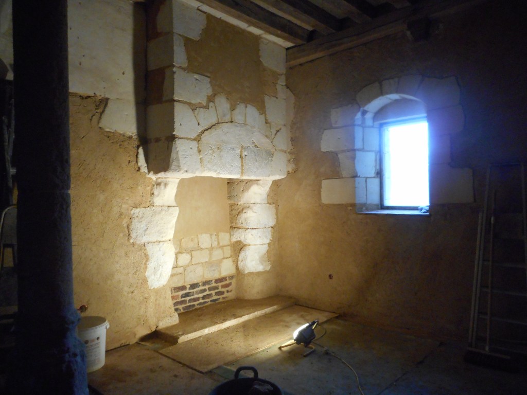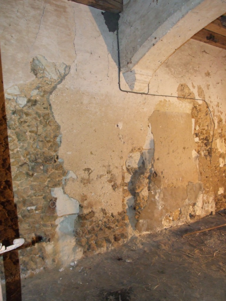 L’enduit est enlevé devant l’ouverture précédemment observée : Etant bouchée, l’ouverture n’était pas observable. A l’occasion des travaux on découvre l’ouverture vers la garde robe Est.