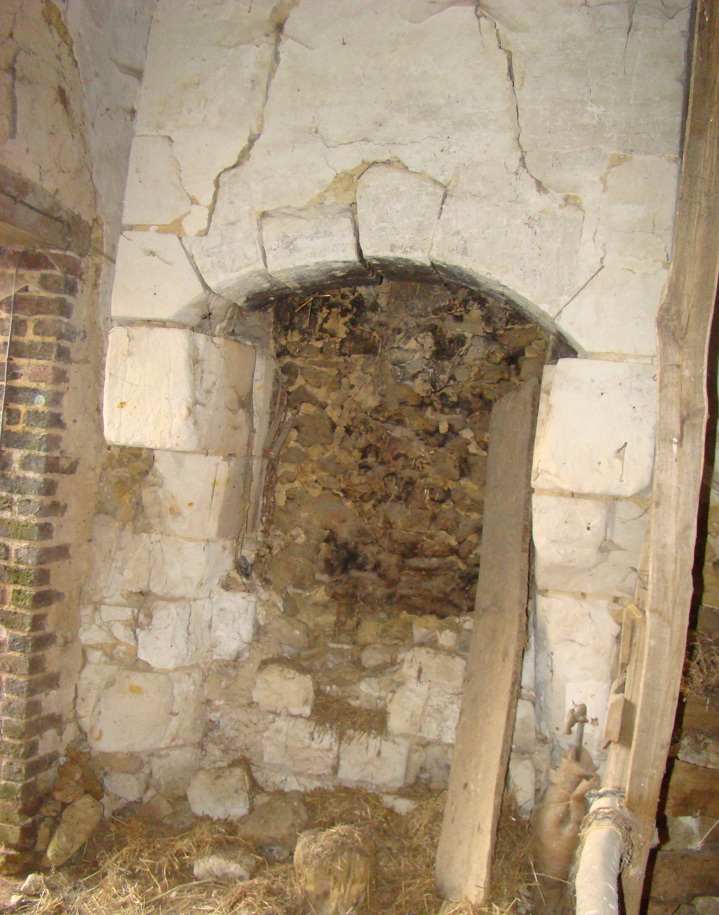 Sur la partie Ouest. La grande ouverture avait été faite pour laisser entrer les bêtes. Une partie de la fenêtre est à refaire.
