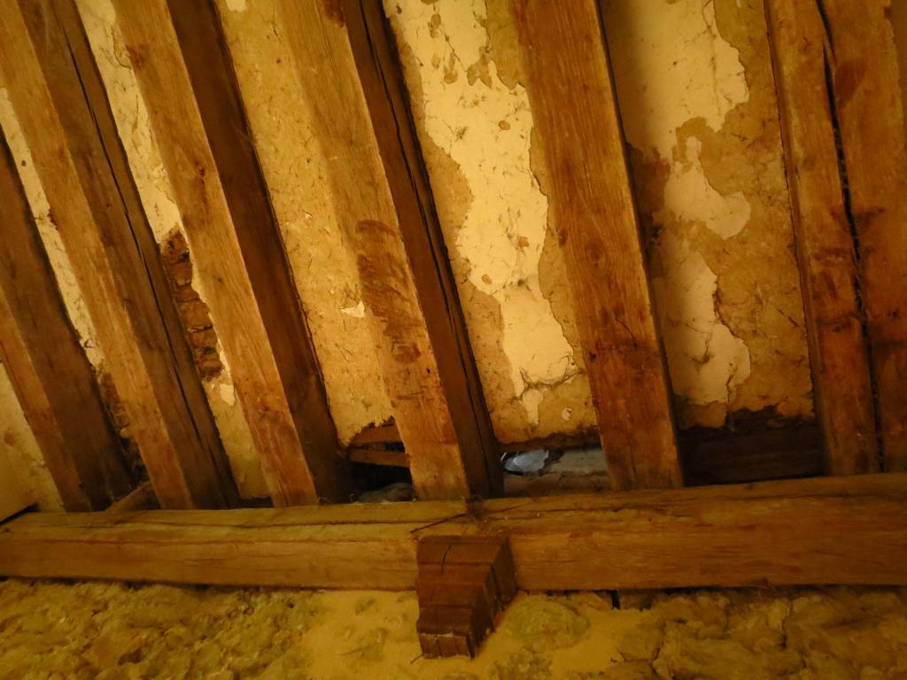 Continuez à lireLa fenêtre Est ayant été supprimée, des infiltrations d’eau ont abimé les pièces de bois et le plancher en barreaudage et torchis à l’aplomb de la fenêtre Est du rez de chaussée