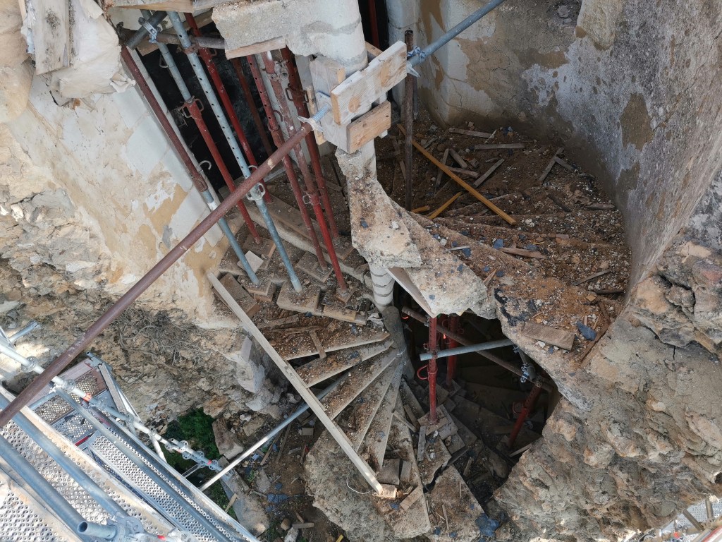 Chantier de restauration et reconstruction de la tour d’escalier – 03 – Montage de l’échafaudage