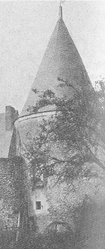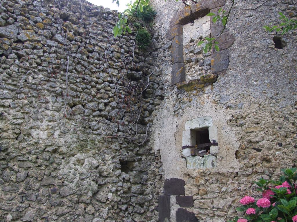 construction contemporaine. Sur la fenêtre du premier étage de la tour près de l’entrée (photo à droite). Sous le linteau, on aperçoit le trou pour un barreau de fer. il existe de la même façon sur le rebord mouluré. Le chanfrein appliqué sur le cadre en roussard, avec congé en bas des piédroits et la mouluration du rebord, sont caractéristiques de la fin du XVe siècle et du début du XVIe