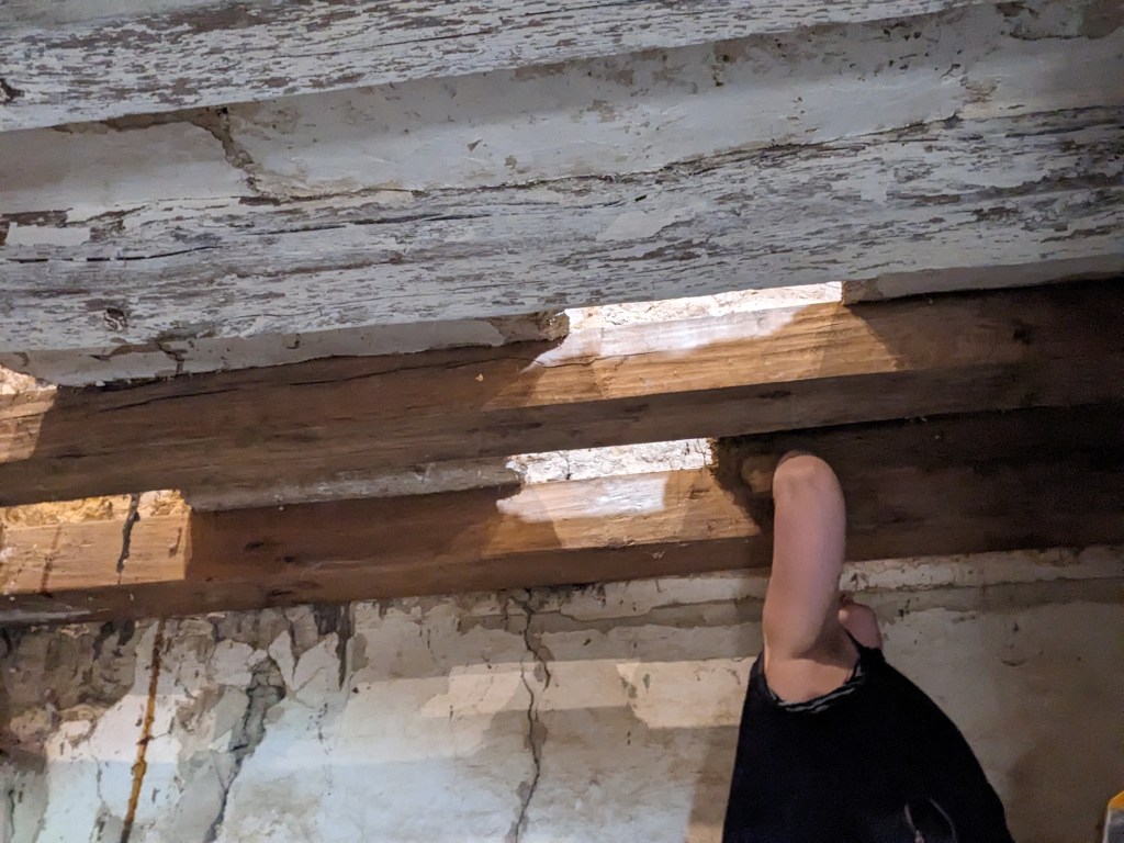 - On voit des fissures sur le pignon et on sait qu’il va il y avoir de la maçonnerie à faire pour façonner un arc de décharge et protéger la potentielle ouverture.