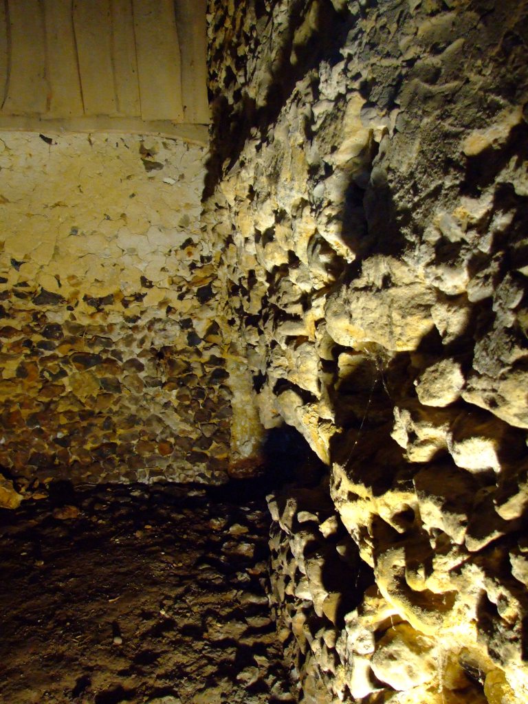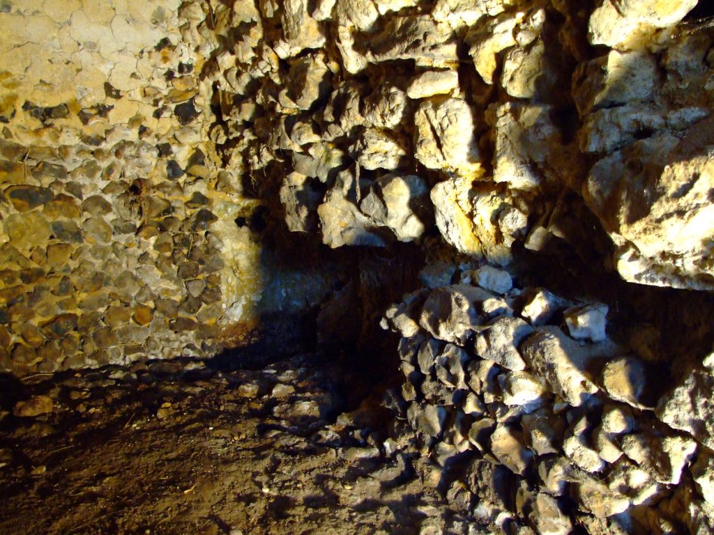 Depuis notre arrivée, ses portes sont restées closes la plupart du temps, comme pour préserver les secrets d’une époque lointaine. L’état pignon Est et du mur d’enceinte, tous deux grandement abîmés, rendaient son accès difficile. Cette pièce n’a pas bougée et a été condamnée par sécurité.