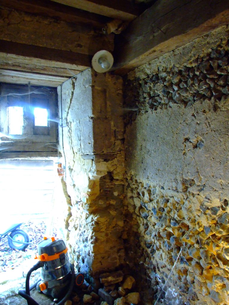 L’occasion du chantier permet de prendre soin du mur sur le côté gauche de la porte. Il avait besoin d’un peu de consolidation