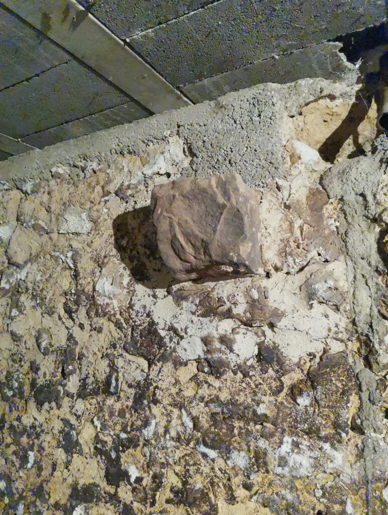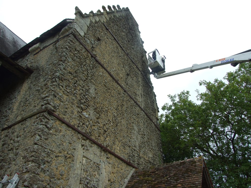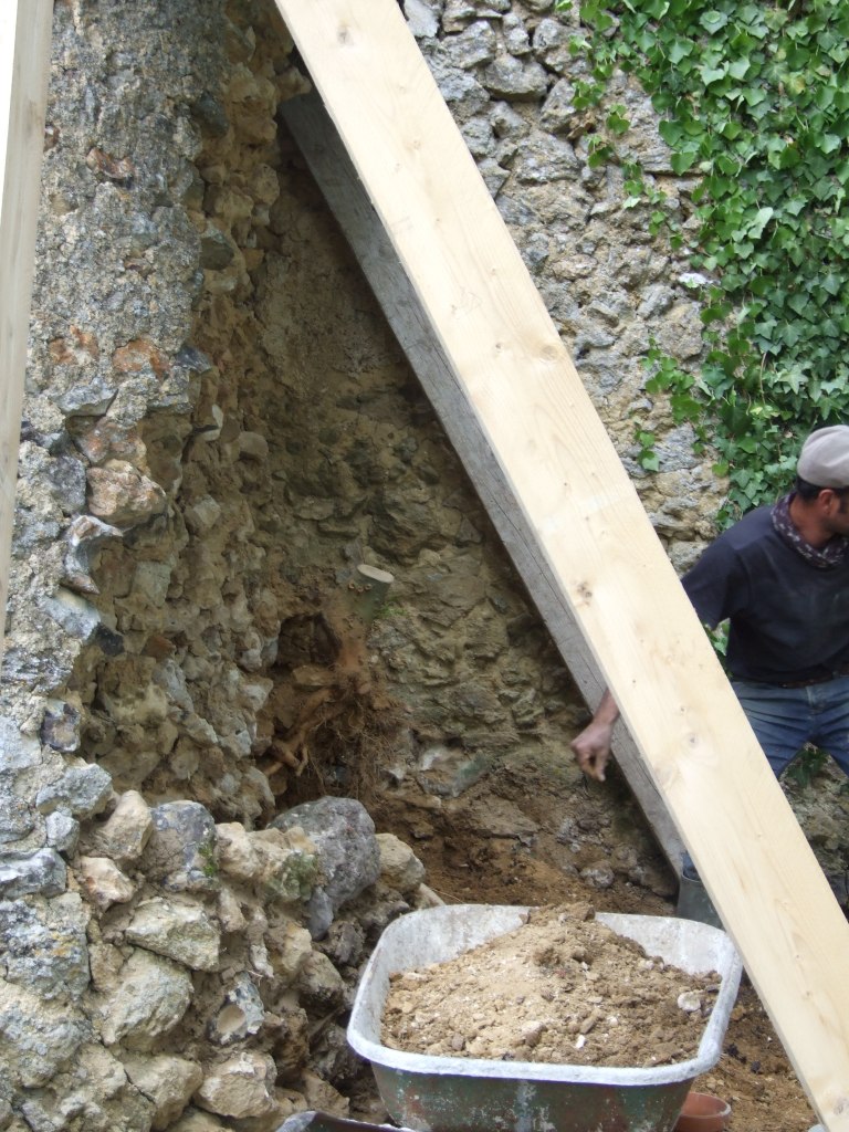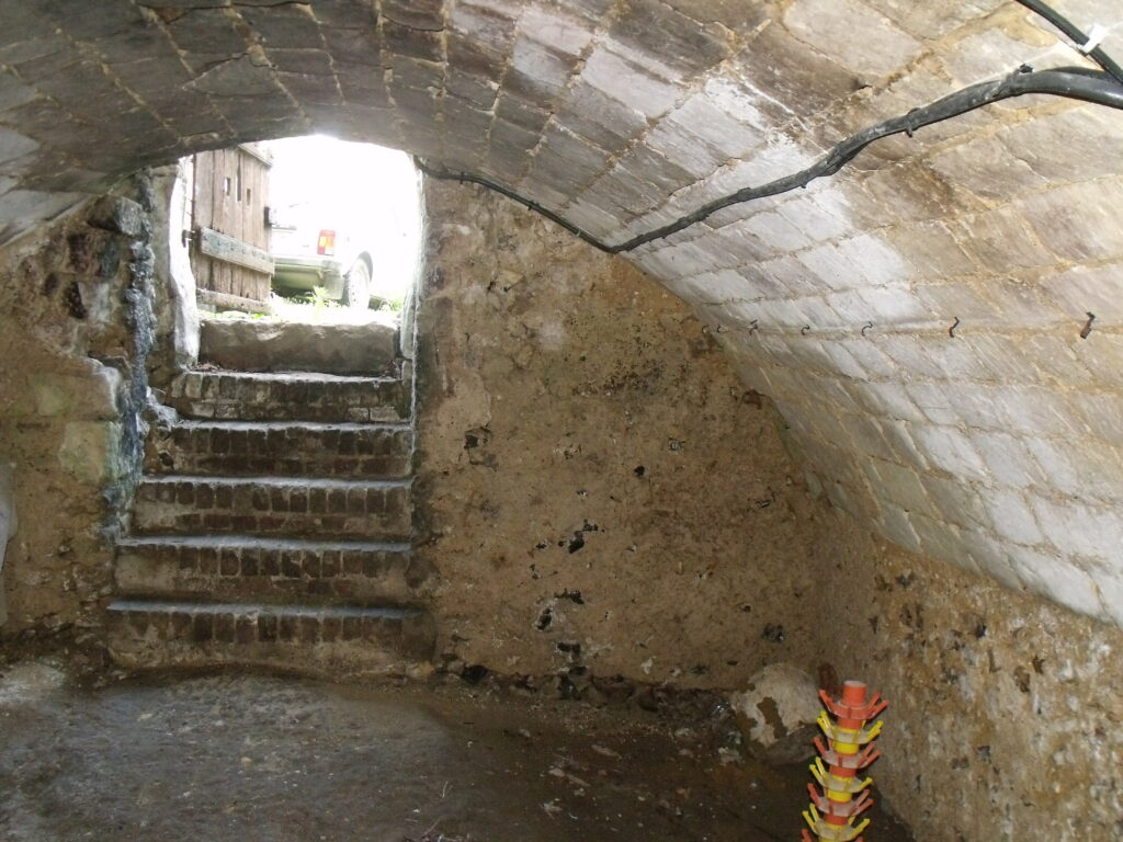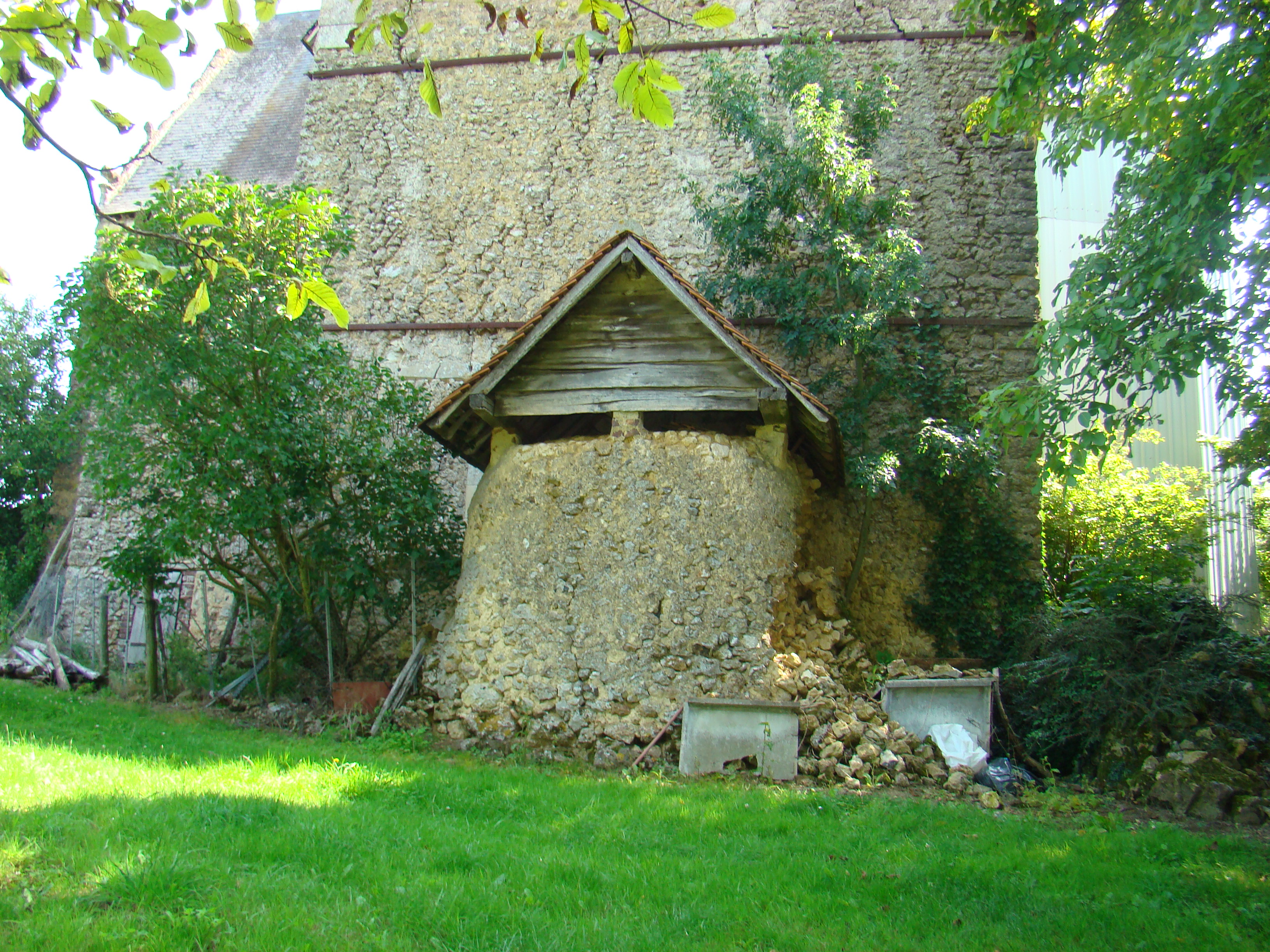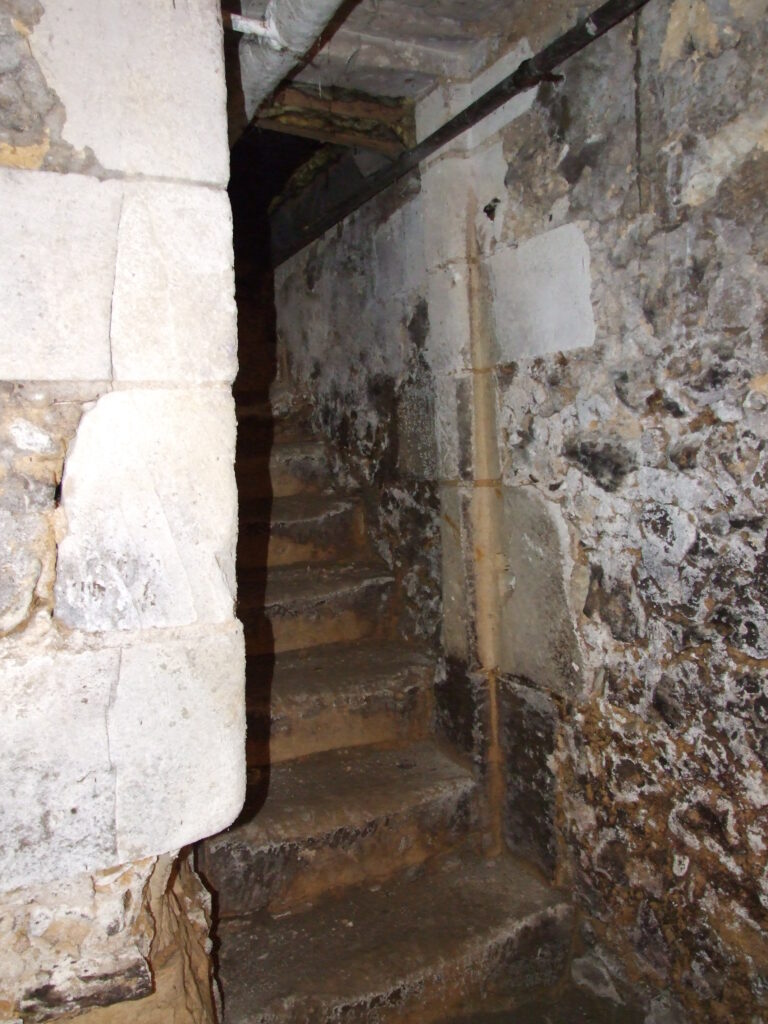 linteau droit appareillé, le seul de ce type (puisque toutes les ouvertures ont des ébrasements couverts en arc segmentaire). Il s’agit probablement d’une porte percée au XVIe.