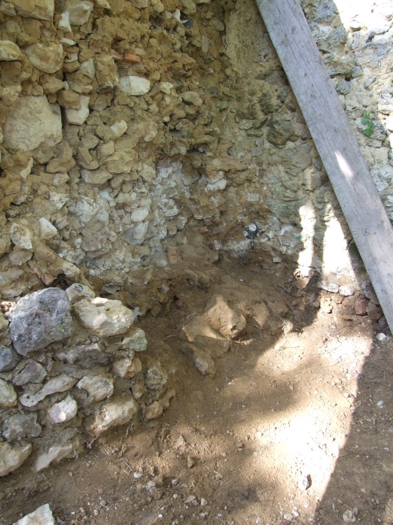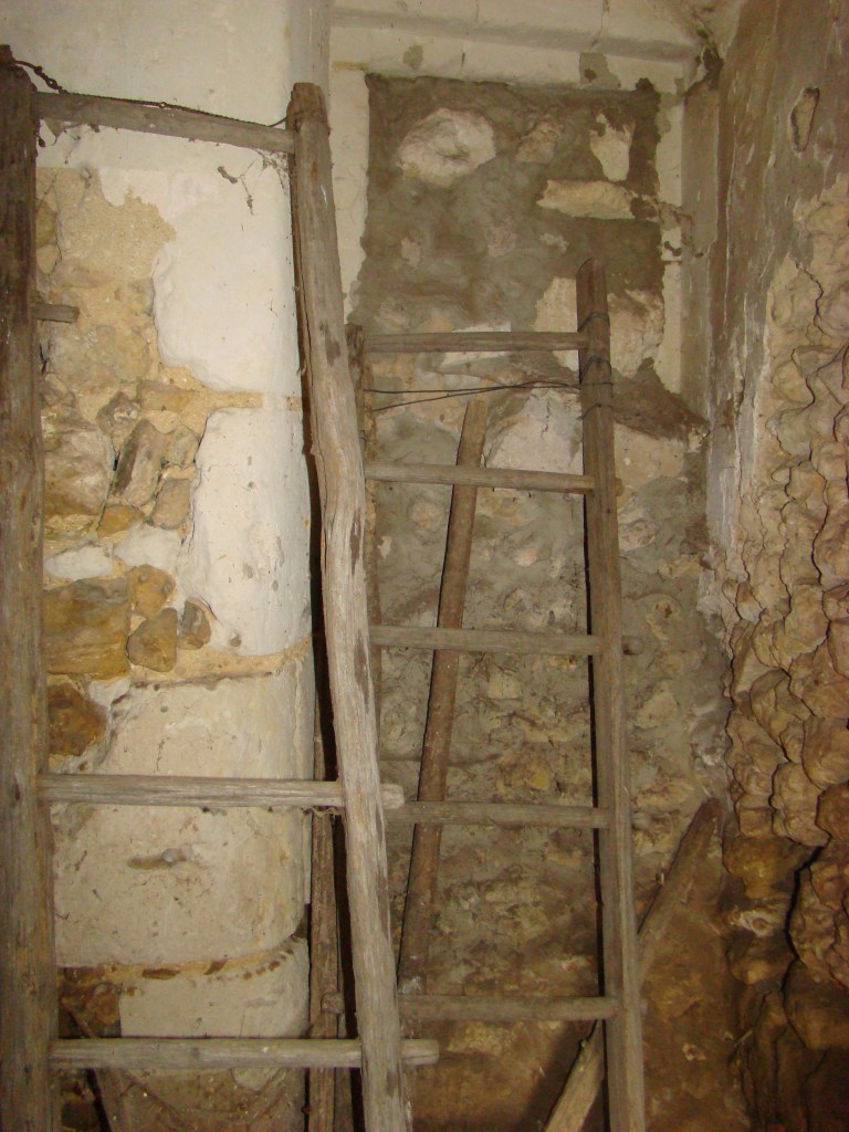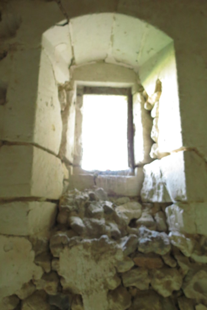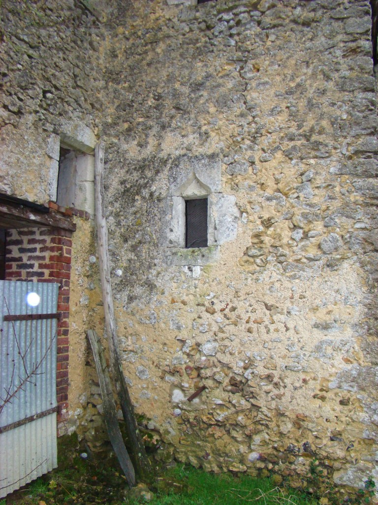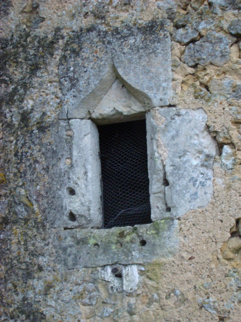 La fenêtre côté mur sud a été transformée en porte au XIXe siècle. Mais il en reste suffisamment de pierres d’origines pour pouvoir déterminer ses dimensions : 1,55 m de large, 1,79 m de haut. Elle est donc plus petite que celle de la salle (1,62 sur 1,84 m). On peut en conclure que la dimension de la fenêtre est calculée en fonction de la taille de la pièce à éclairer.