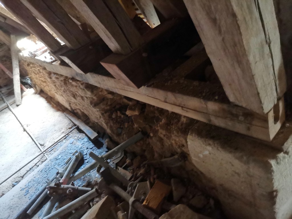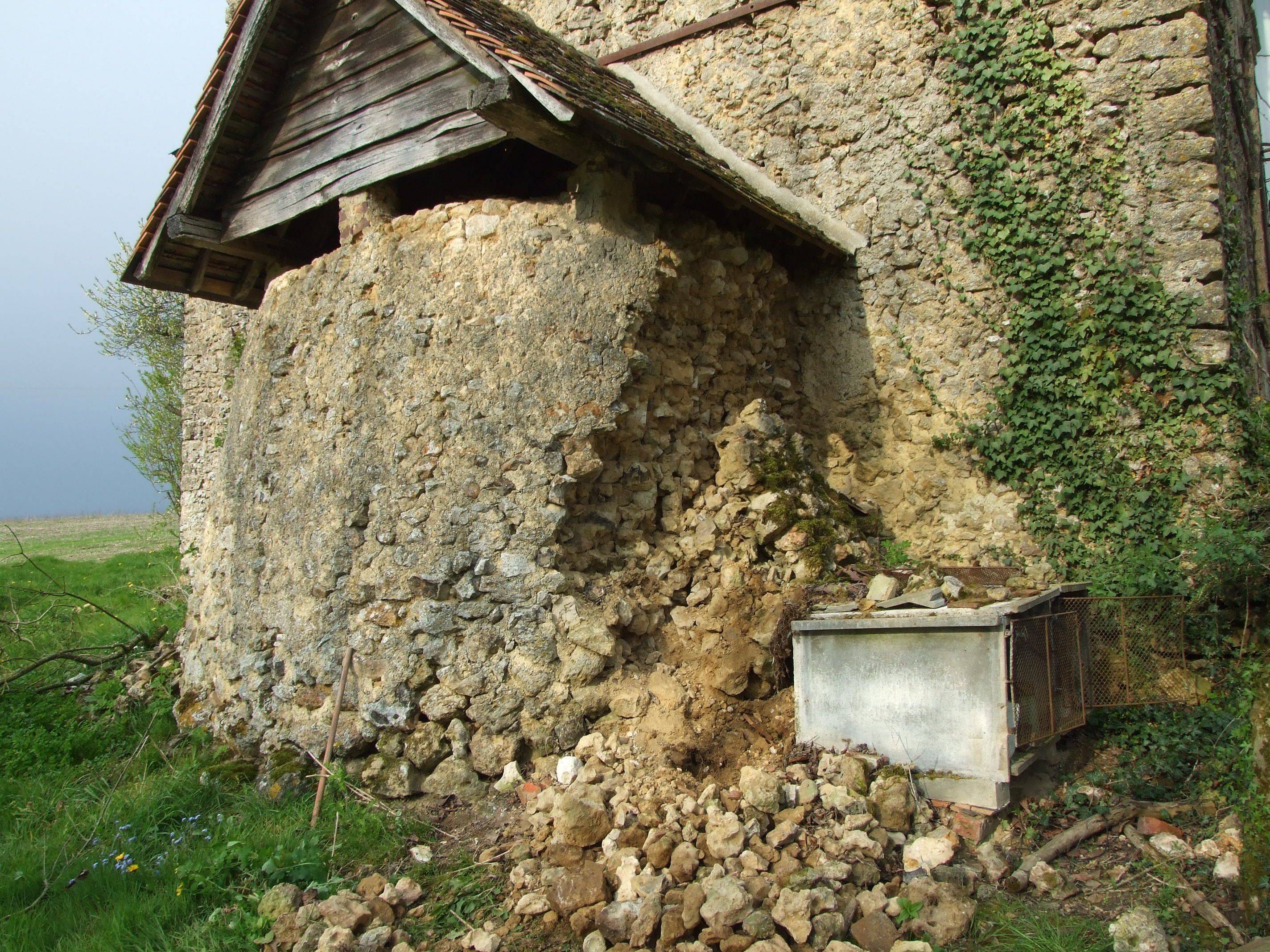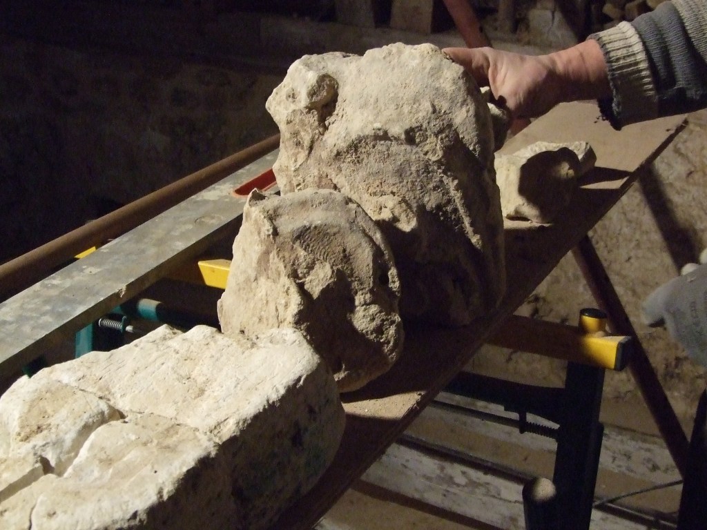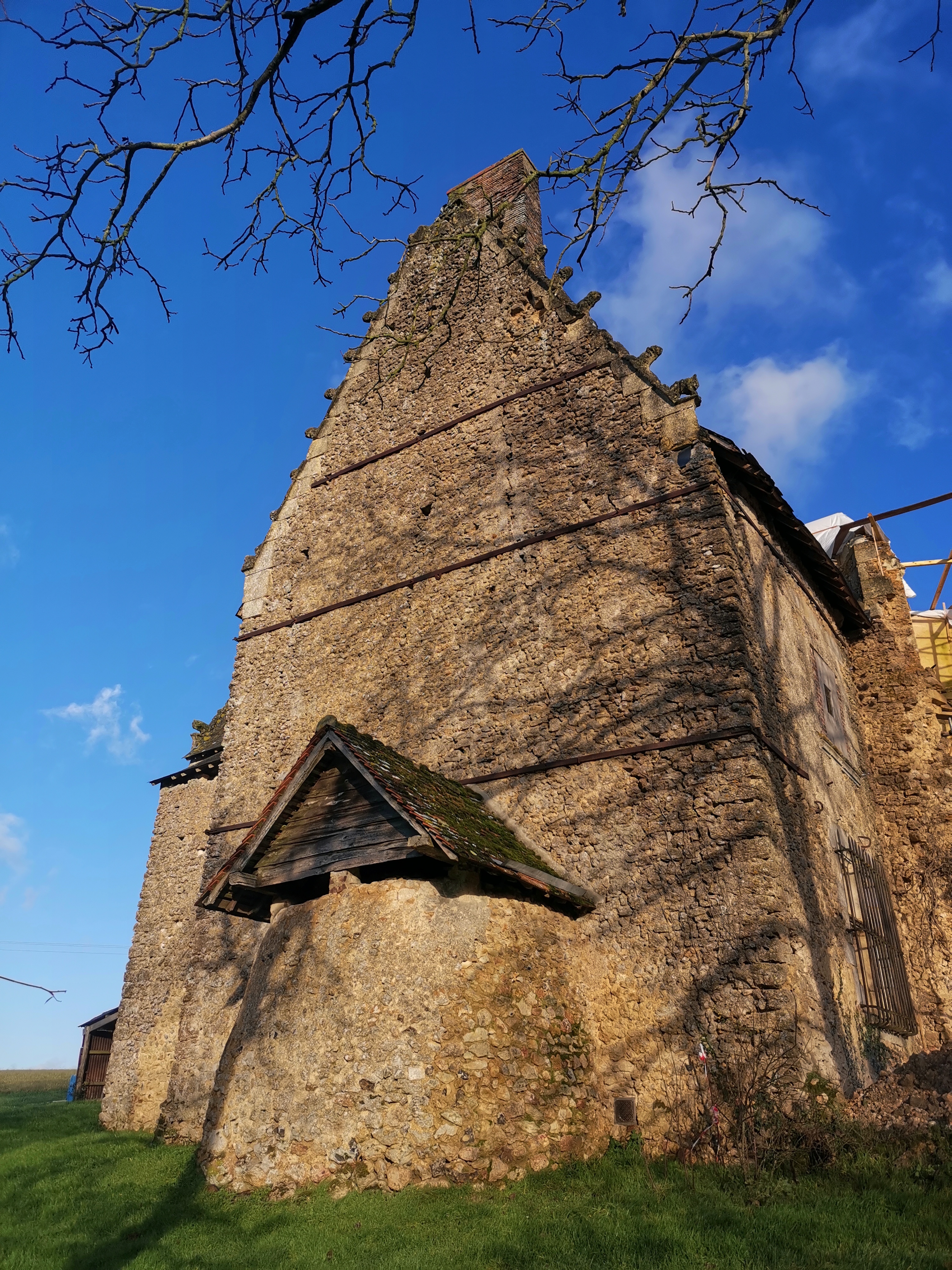 La fenêtre côté mur sud a été transformée en porte au XIXe siècle. Mais il en reste suffisamment de pierres d’origines pour pouvoir déterminer ses dimensions : 1,55 m de large, 1,79 m de haut. Elle est donc plus petite que celle de la salle (1,62 sur 1,84 m). On peut en conclure que la dimension de la fenêtre est calculée en fonction de la taille de la pièce à éclairer.