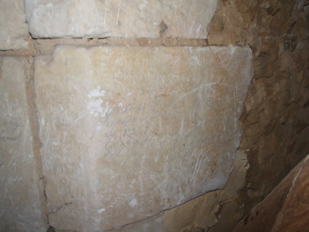 Ce peut être le graffiti d’un des agents des Ursulines. A moins qu’il s’agisse du blason des Souvré, mais on ne voit pas pour quelles raisons.