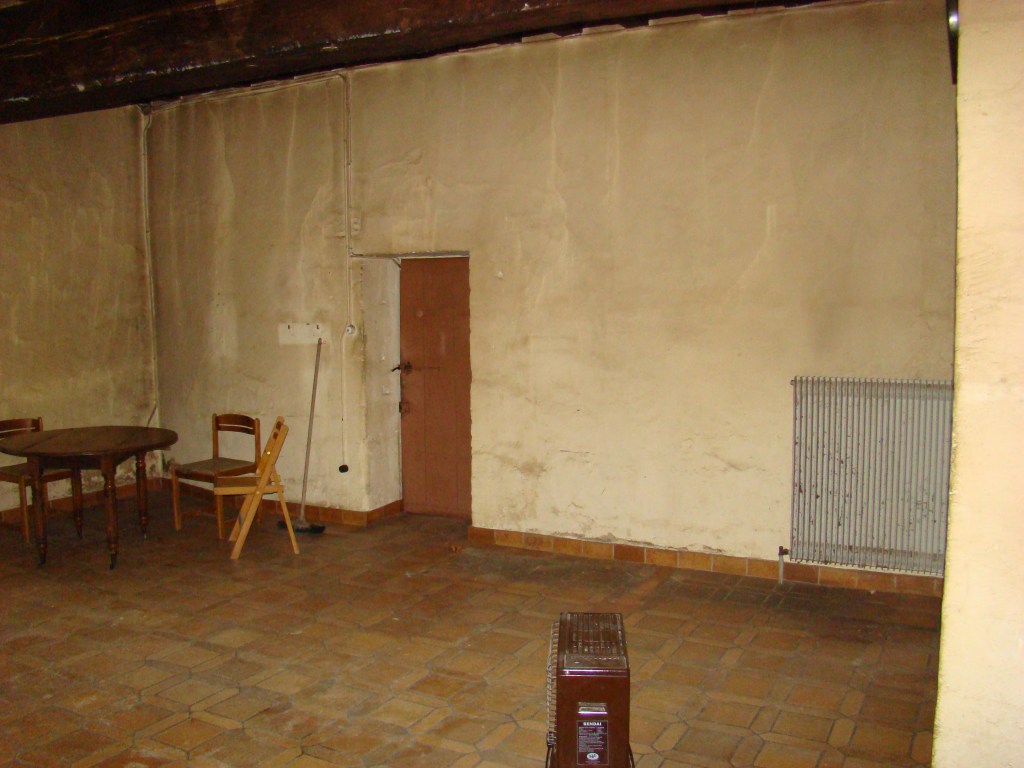 Le sol a été refait à la fin du XXe siècle sur une chape de béton. Il ne reste rien de celui d’origine. Selon l’acte de visite et montrée de l’an 2, cette pièce qui s’étend sur une cave était revêtue de « madriers », c’est à dire de blocs de bois, alors très usés :