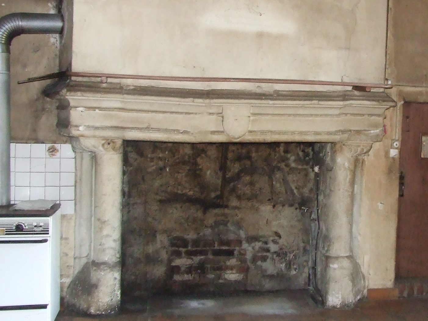 Le cheminée qui s’appuie sur le pignon Est présente un foyer de 1,70 m de large sur 1,37 m de haut. Son ornement est taillé dans la pierre calcaire. Il se compose de piédroits en forme de colonne cantonnée de