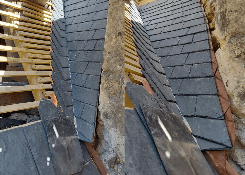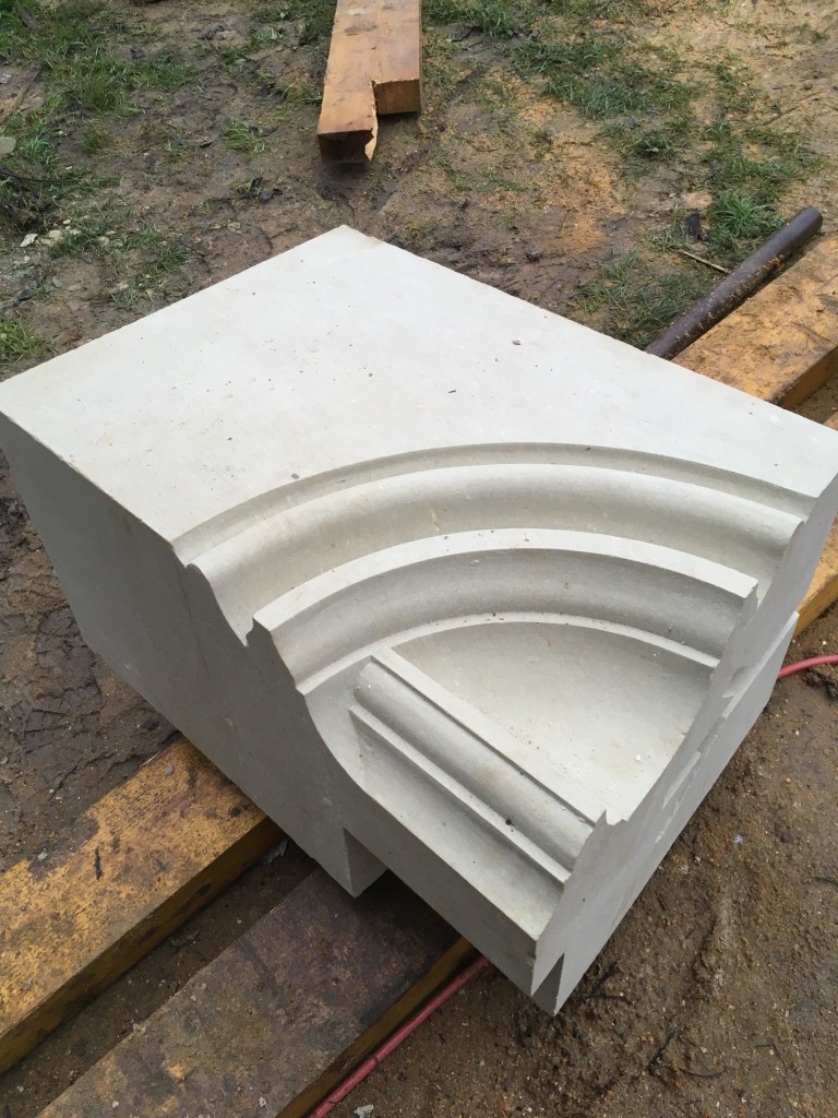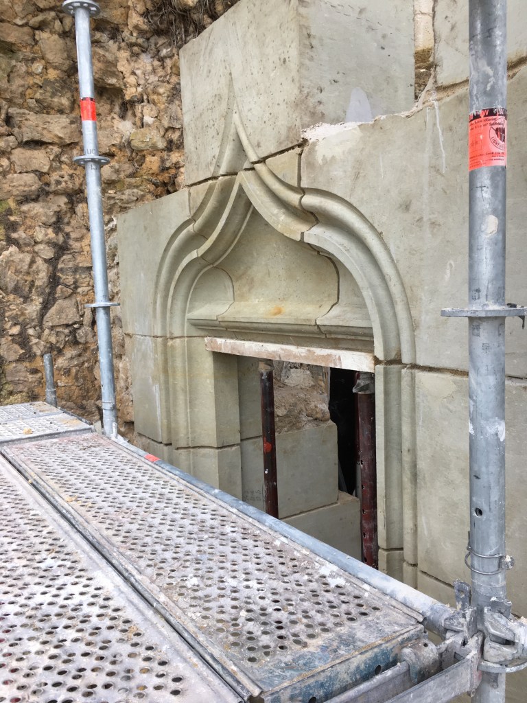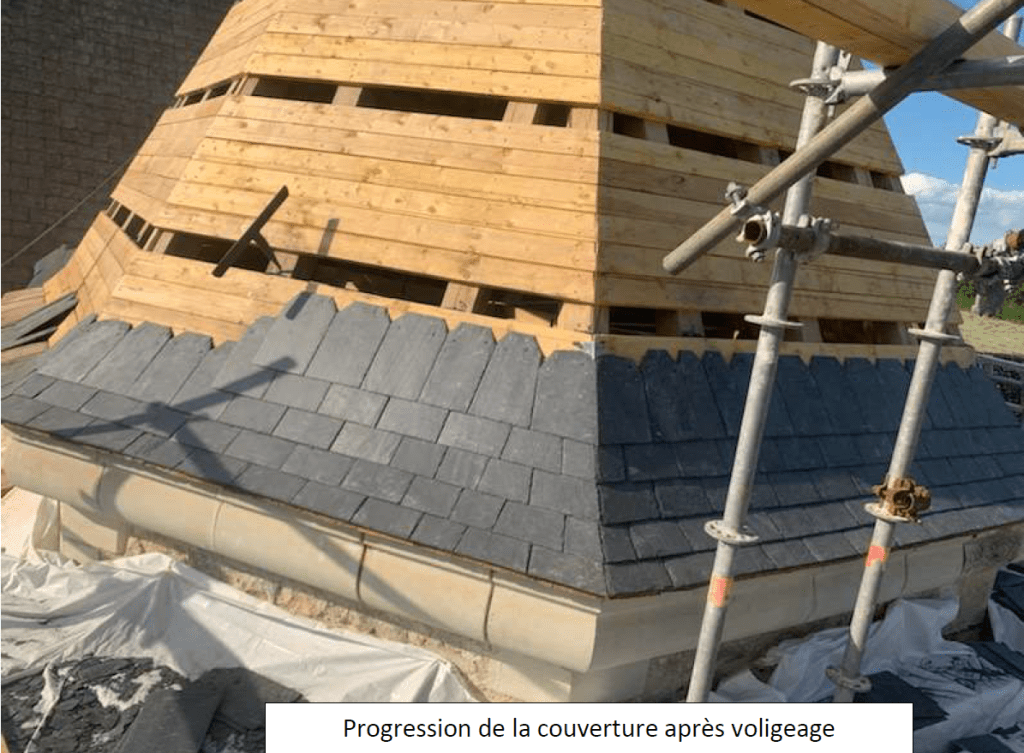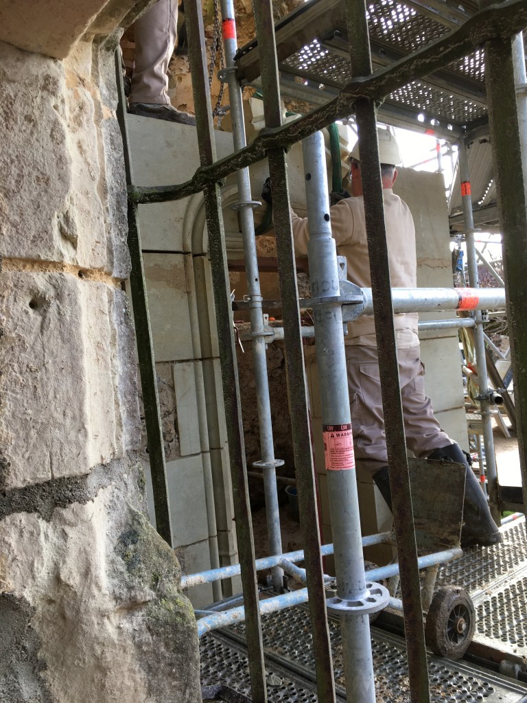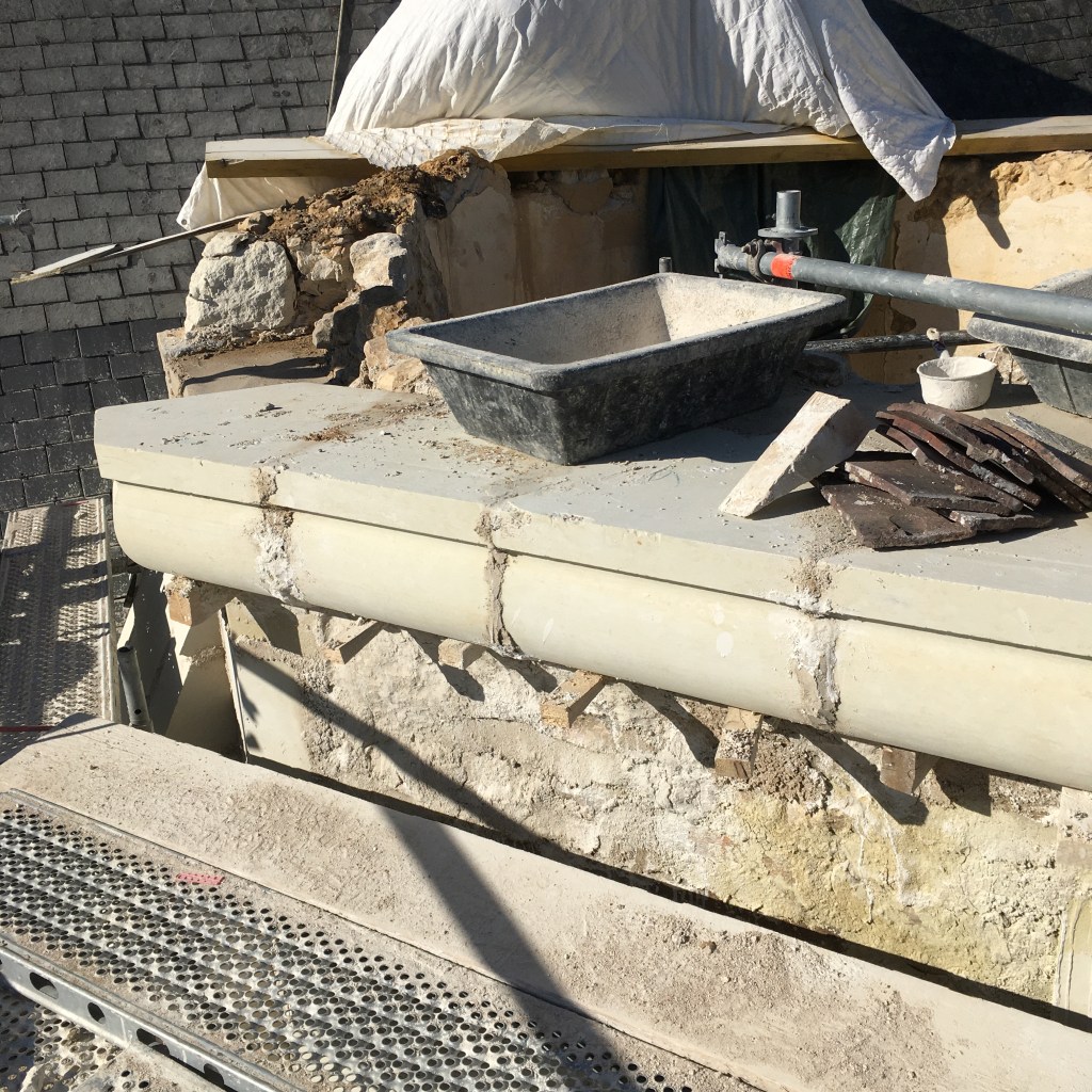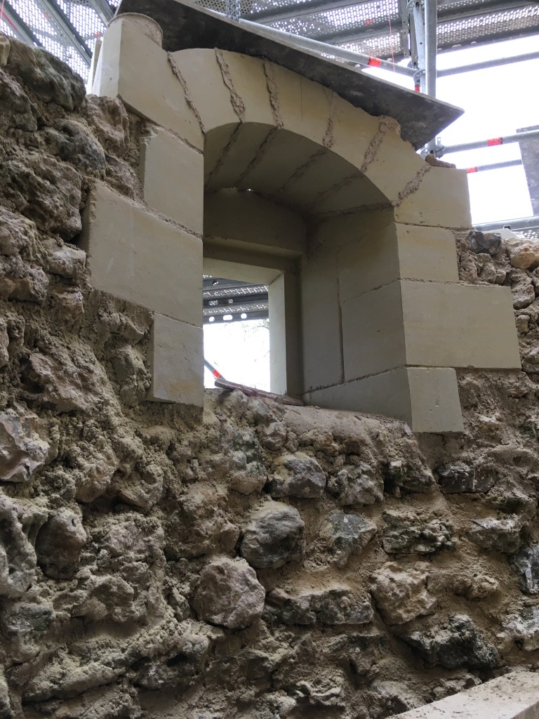 Lire la suite : Chantier de restauration et reconstruction de la tour d’escalier – 15 – Réalisation des tailles de finitions et de vieillissement sur parements et marches
