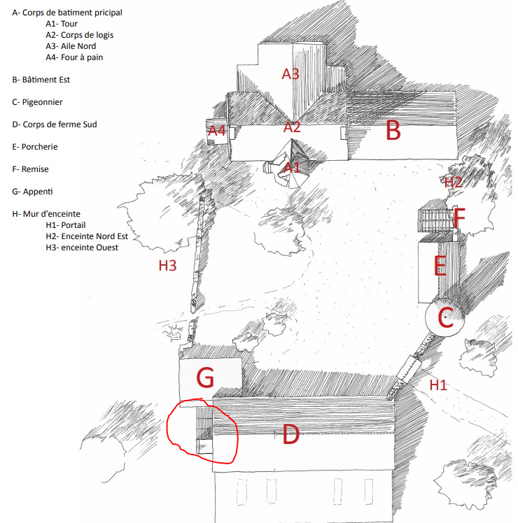- 2. Une porte d’entrée murée dans l’angle nord-ouest.