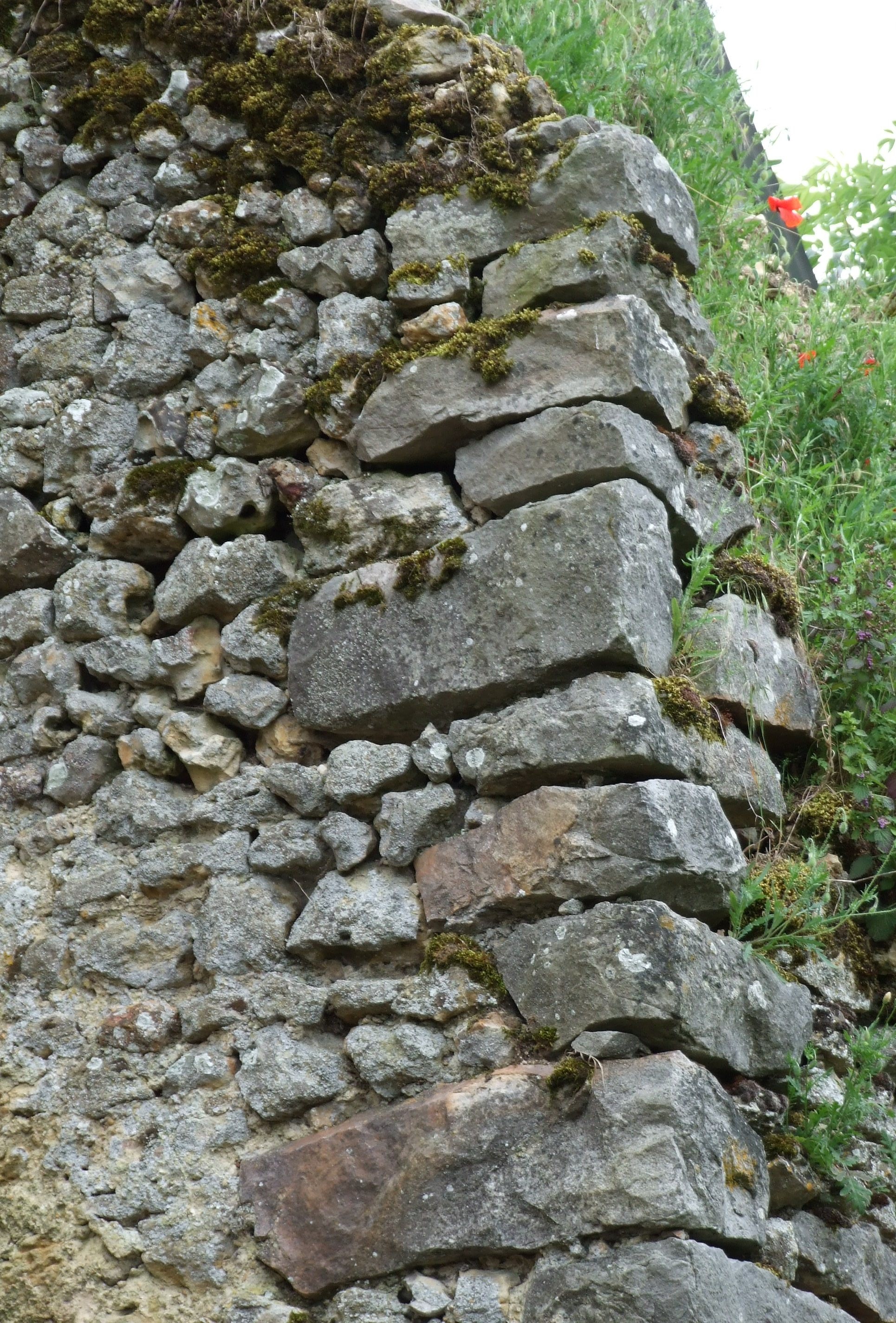 Ce qui reste de cette porte d’angle permet de connaître sa hauteur : 1,70 m, tout à fait convenable pour une étable et pour des domestiques, mais trop faible pour des seigneurs. Mais pas sa largeur car il ne reste qu’une seule des pierres qui constituait le linteau appareillé.