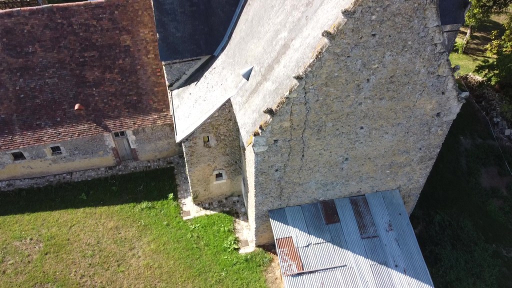 A l’aplomb de la façade nord, il existe une structure de charpente formant tout un pignon sud à l’aile nord en retour d’équerre, pignon construit en colombage et torchis. Le torchis a disparu. Au milieu de ce pignon, une porte est assemblée. Elle se situe exactement en face de la porte de l’escalier en vis.