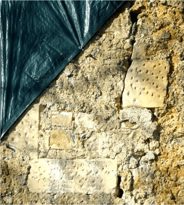 Toute la suite du mur vers l’Est a été en grande partie rénovée et repercée au XIXe siècle pour es besoins agricoles.