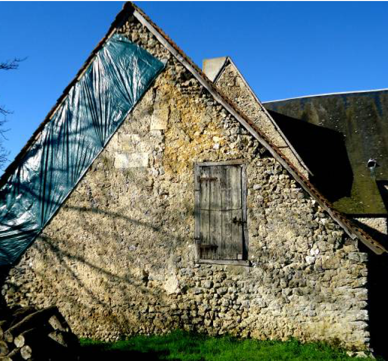 le coin du mur entre le pignon Est et Sud est très abîmé et se délite.