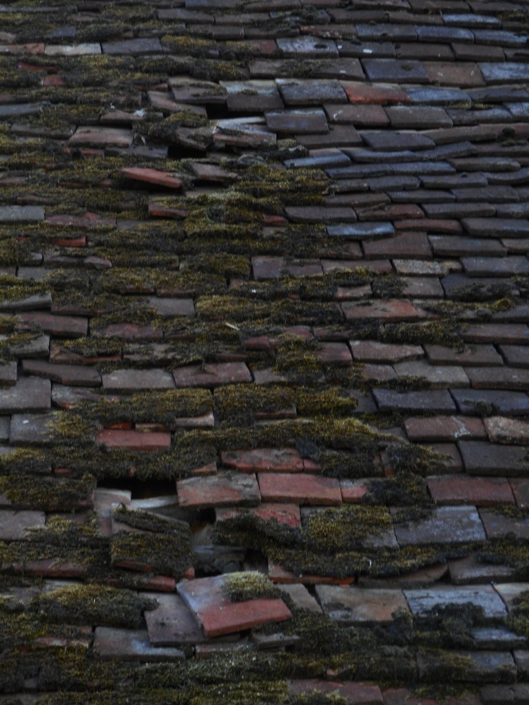 Le toit de cette aile à besoin d’être changé. Chaque versant à un angle de 48° comportant un peu plus de 100 m² de tuiles.